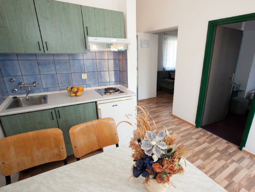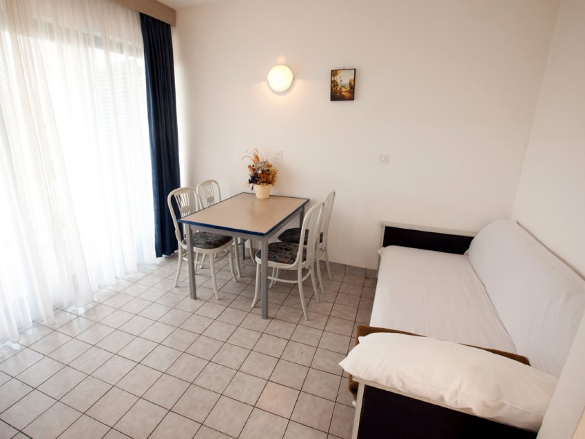 APARTAMENT DO 6 OSÓB (E6+1 / 92118): 1 lub 2 poziomy; klimatyzacja, internet WiFi (w cenie), 2 sypialnie dla 2 osób, pokój dzienny z miejscem do spania dla 2 osób, aneks kuchenny, SAT-TV, telefon (odpłatnie), łazienka/WC, balkon / możliwość dostawki dla 7. osoby (na zapytanie/odpłatnie) / apartamenty położone ok. 100 m od morza.