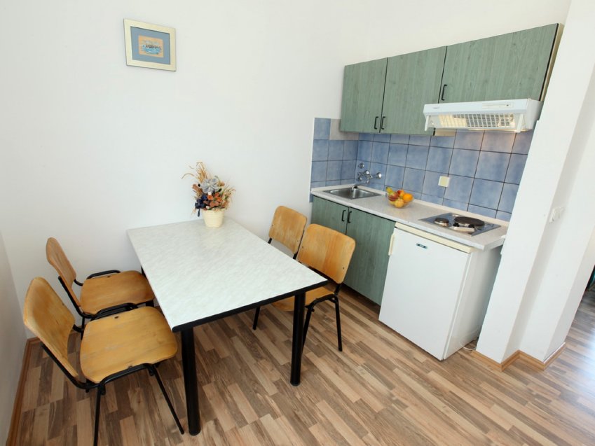 APARTAMENT DO 6 OSÓB (E6+1 / 92118): 1 lub 2 poziomy; klimatyzacja, internet WiFi (w cenie), 2 sypialnie dla 2 osób, pokój dzienny z miejscem do spania dla 2 osób, aneks kuchenny, SAT-TV, telefon (odpłatnie), łazienka/WC, balkon / możliwość dostawki dla 7. osoby (na zapytanie/odpłatnie) / apartamenty położone ok. 100 m od morza.